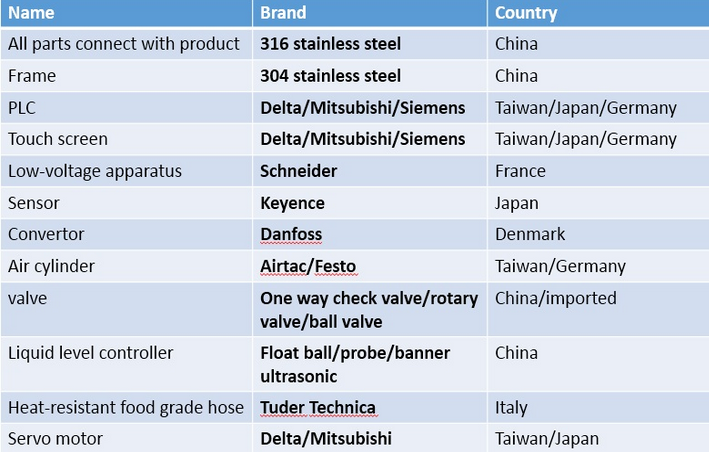 1. O material de todas as partes pelas quais o produto flui pode ser equipado de acordo com o caráter do produto; portanto, os materiais são ideais para encher a maioria dos produtos corrosivos fortes.